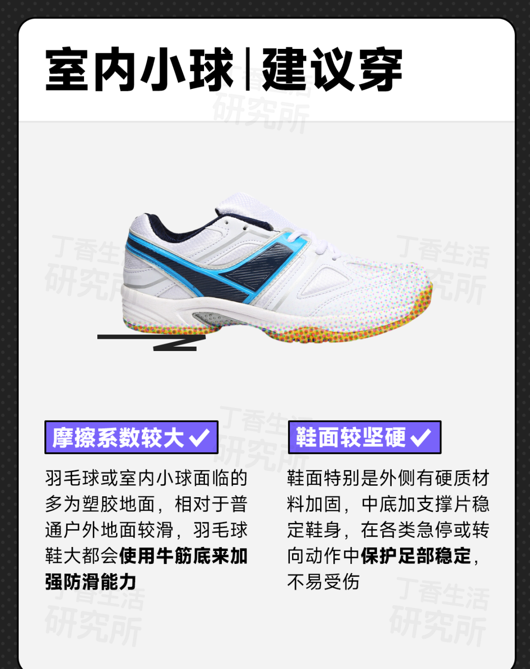 👉比如,室内小球运动最适合的是橡胶底的鞋子。