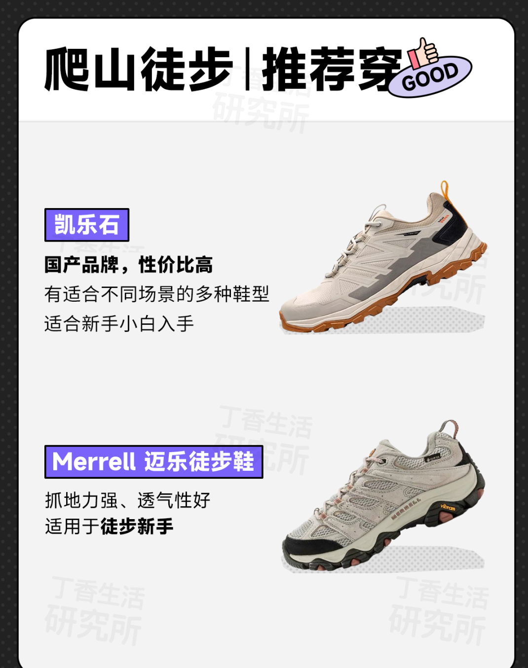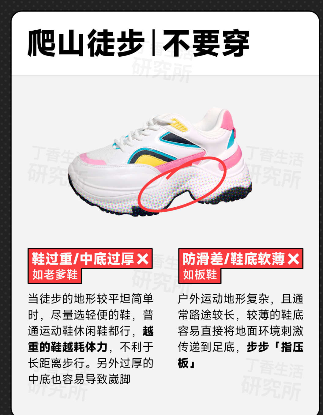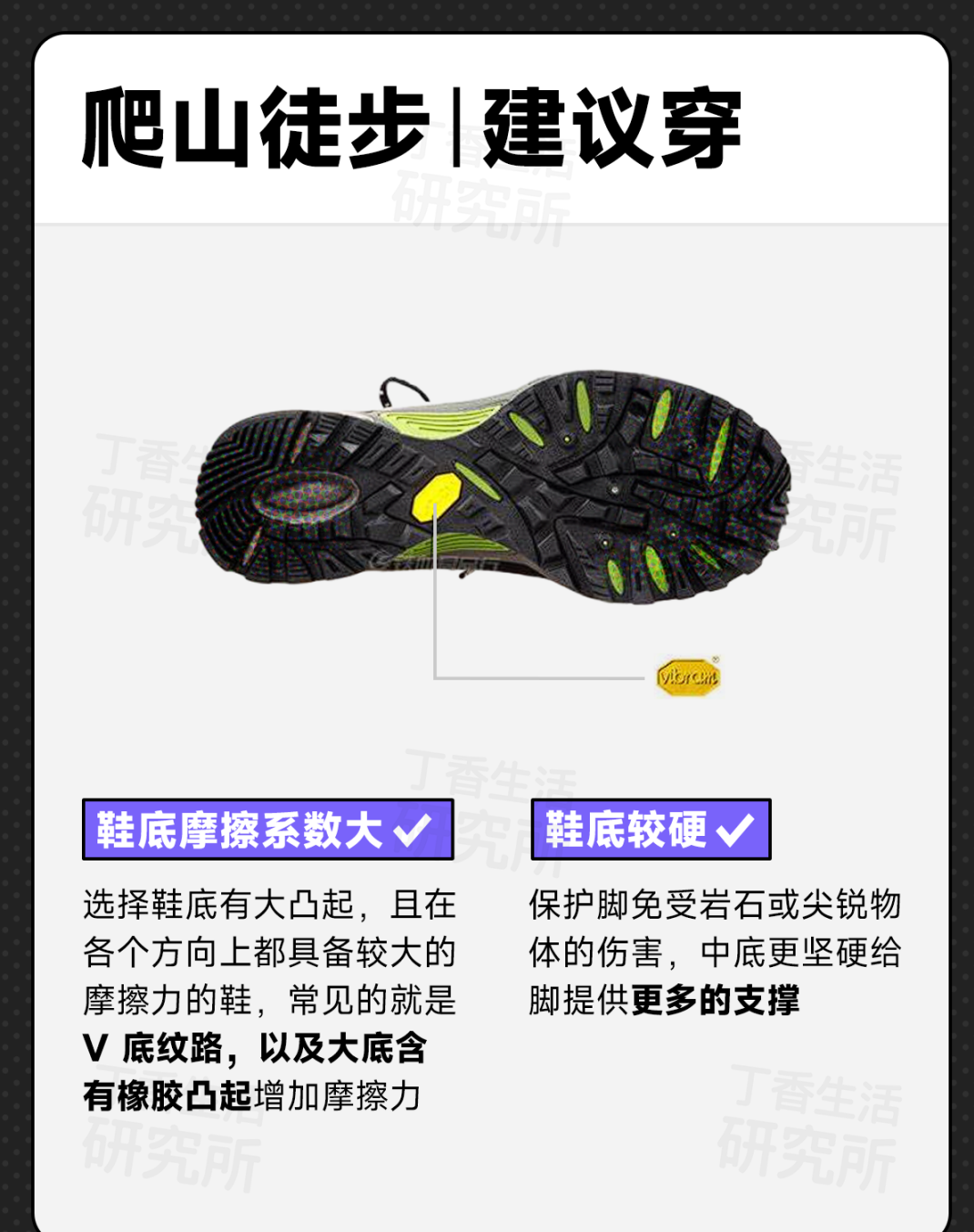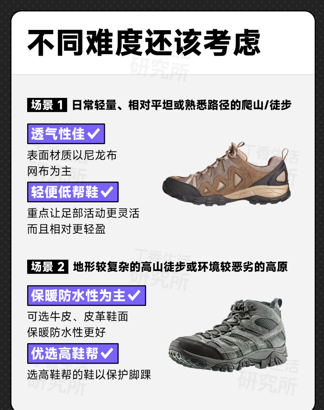 👉比如,日常徒步其实没必要选高帮户外鞋,更重要的是看鞋底选摩擦系数更大的鞋子;
