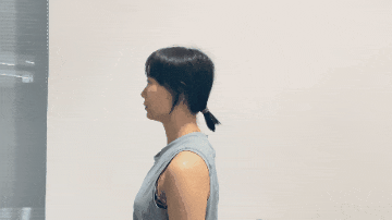 非常简单,用力挤出双下巴的感觉,慢慢地你可以不借助手,感受脖子后侧肌肉发力,用脖子带动下巴,用力向后顶。