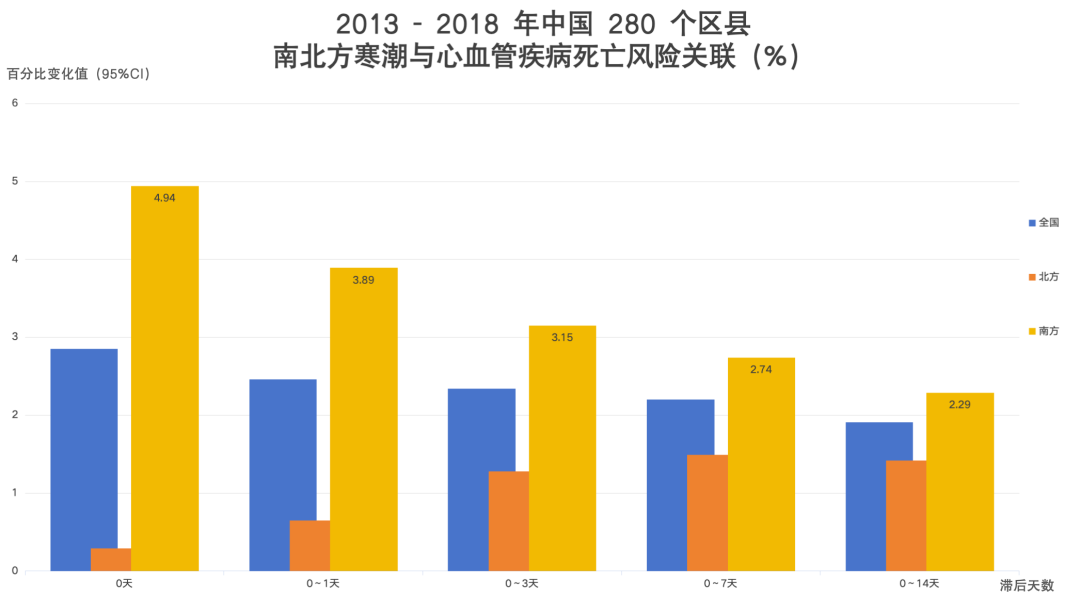 习惯了温暖的南方人,「适应寒冷」的能力远远不如北方人。因此在寒潮来临的时候,南方心血管疾病死亡的风险远高于北方。[13]