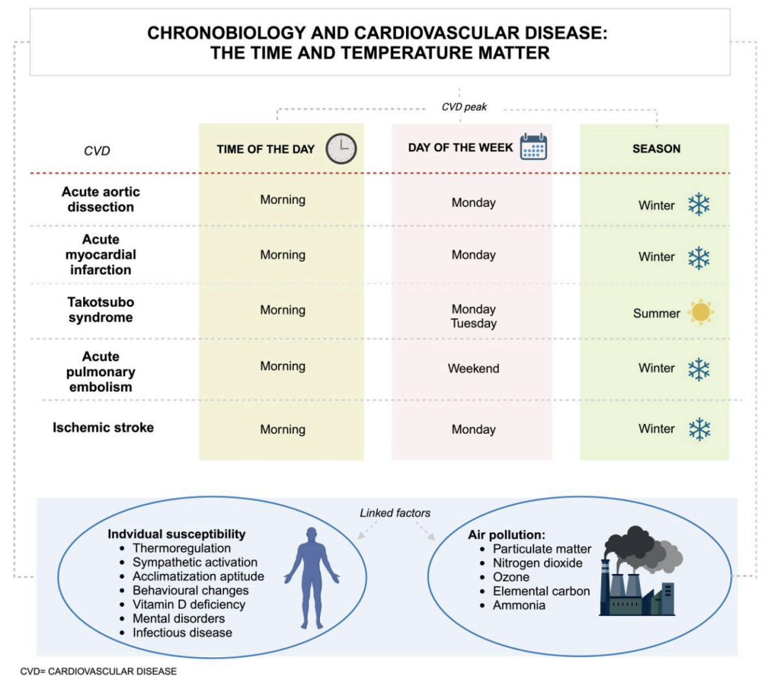 [14]Carbone A, Ferrara F, Bossone E. Chronobiology and Cardiovascular Disease: The Time and Temperature Matter. Eur J Prev Cardiol. 2024 Oct 4:zwae326.