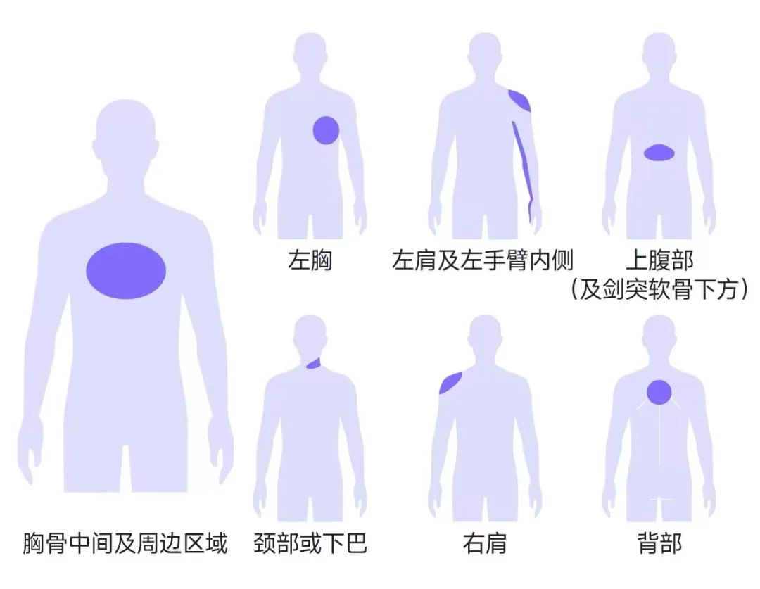 除了最常见的胸前区疼痛之外,上腹痛、颈部紧缩感、牙齿发作性疼痛、肩背部放射痛等也都可能是心绞痛或者心肌梗死的表现,迷惑性极强。