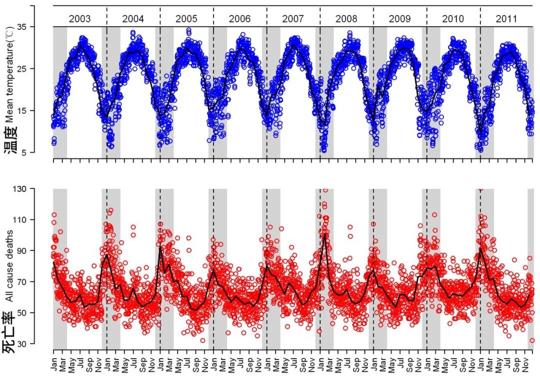 9 年间的数据共同表明:冬季死亡率急剧上升