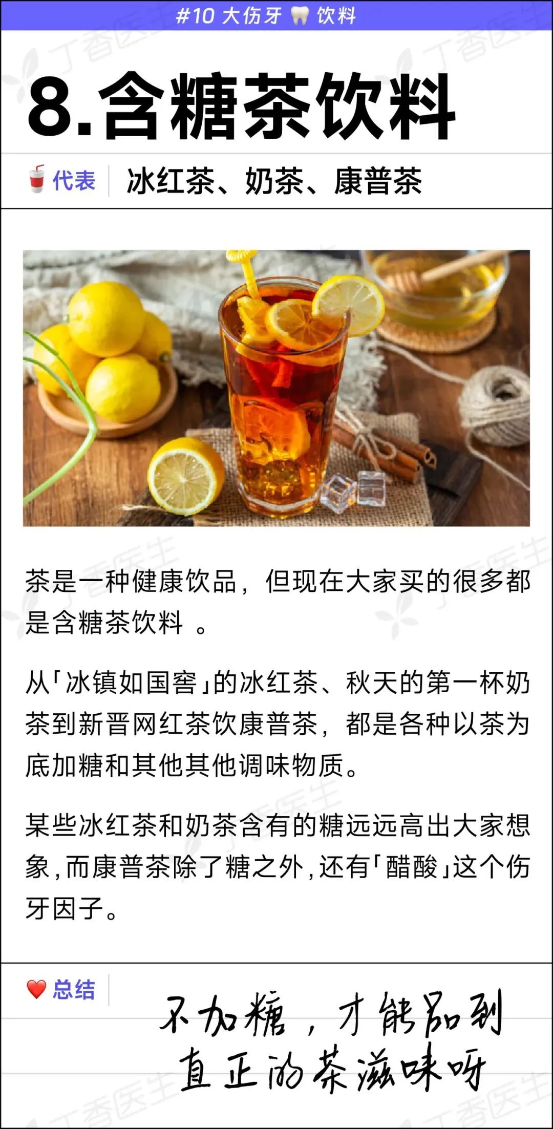 1. 以上伤牙的饮料,能不喝就不喝。如果觉得难,先从每周减少一瓶做起。