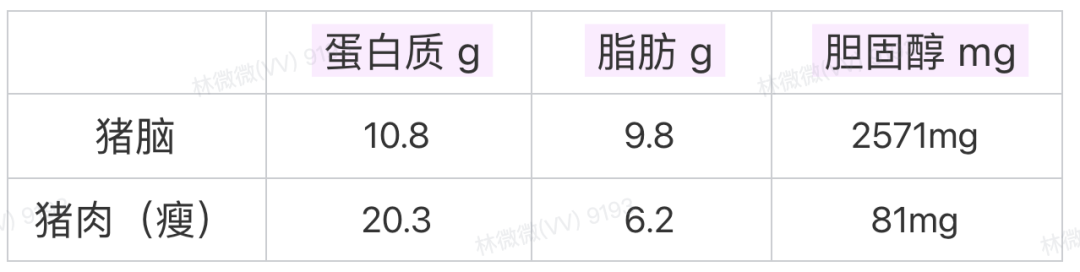 猪脑呢?每 100 克中,就有 2571 毫克胆固醇[1],比一个鸡蛋黄的 12 倍还多![2]