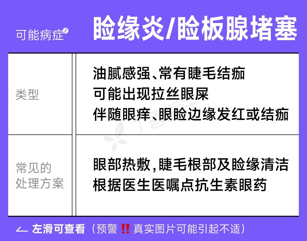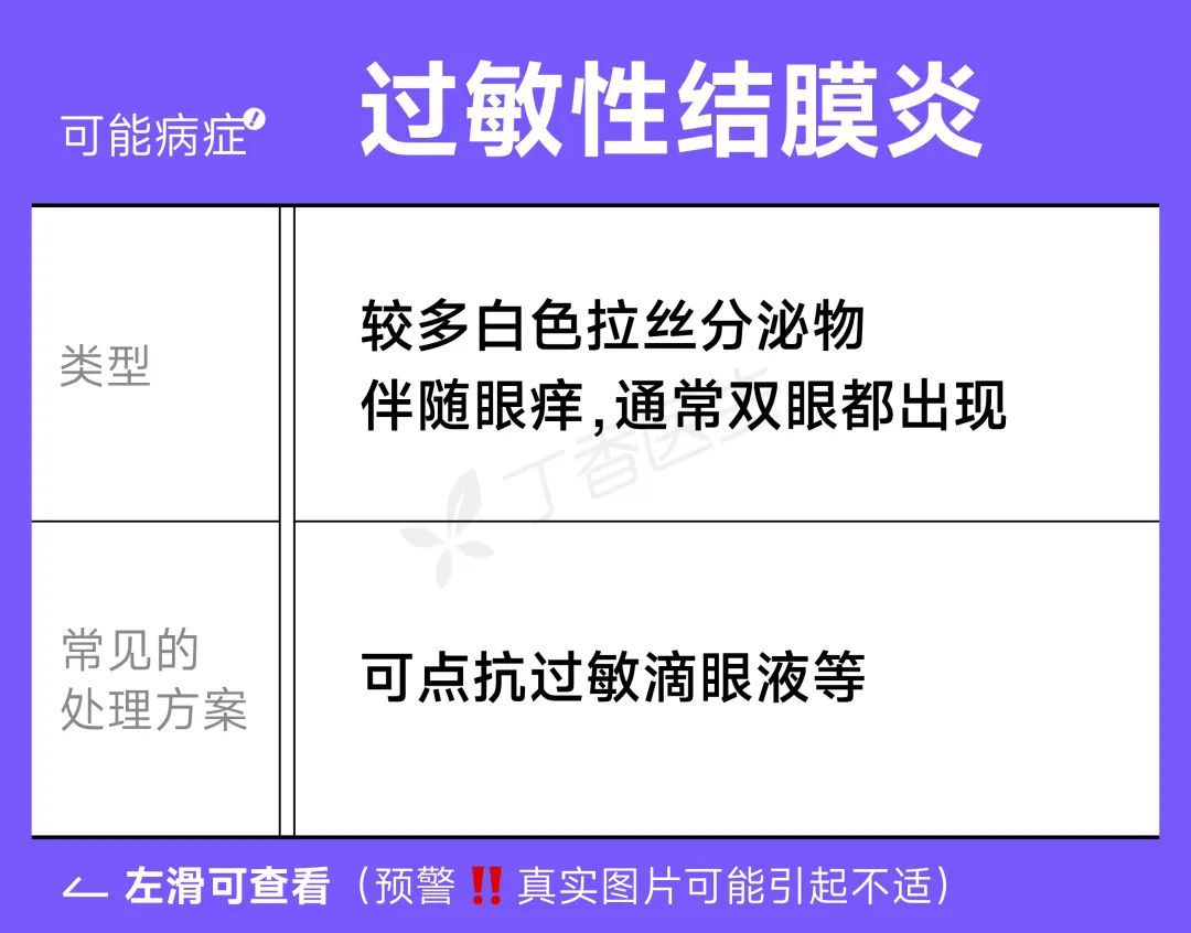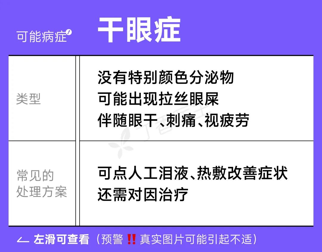 不过一些特殊情况下,的确可能和疾病有关,这种咱就别想着改变饮食来让眼睛变好了,还不如赶紧去医院看看,一般我们可以通过颜色、性状、分泌量简单区分(文末附对照图)。