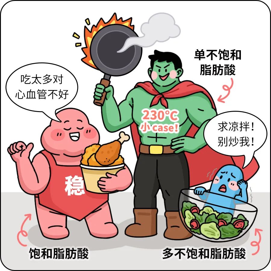 油的组成分为:饱和脂肪酸、单不饱和脂肪酸、多不饱和脂肪酸,脾气不太一样——