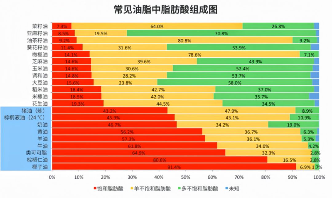 在吃油这件事上,咱们中国人问题是:不饱和脂肪吃的太少,饱和脂肪吃得太多了!