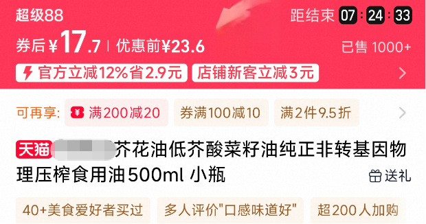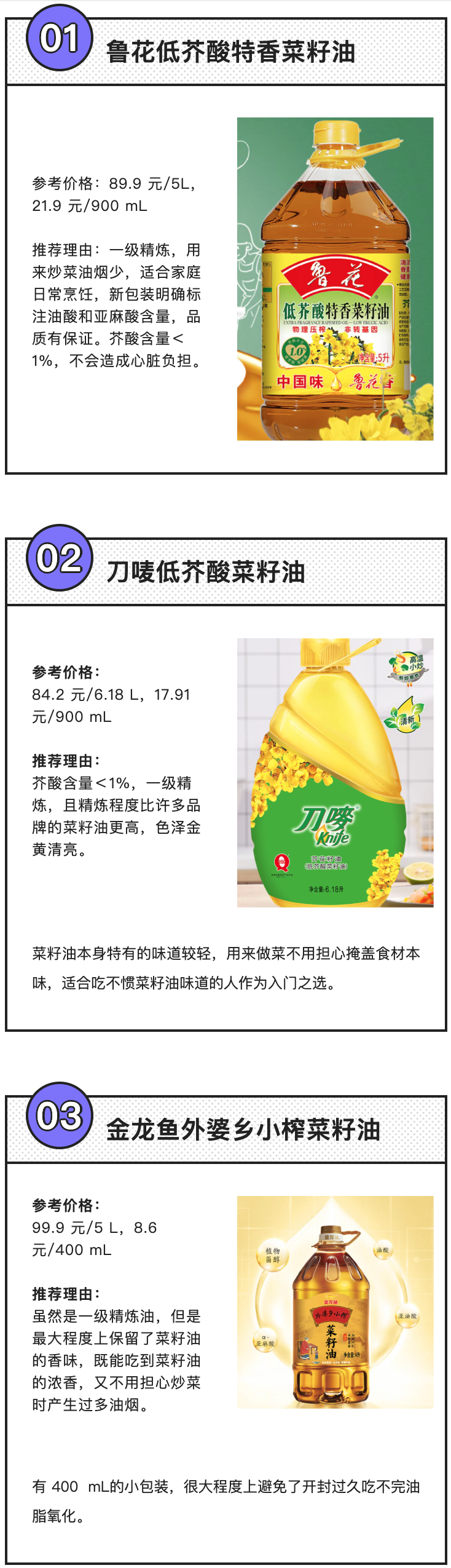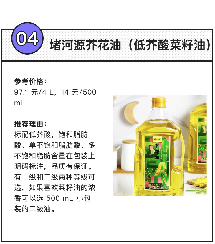按照这个标准,我们为大家挑选了 4 款值得安利的菜籽油:
