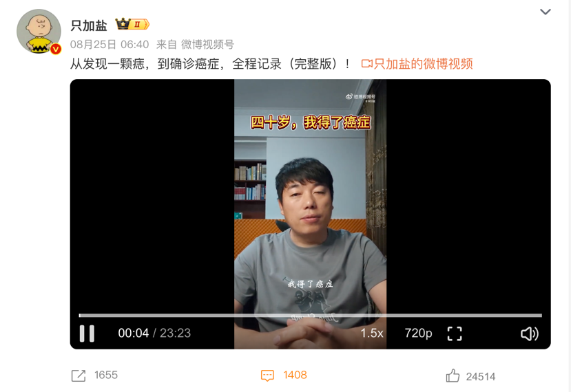 丁香医生审稿专业委员会同行评议通过这两天,微博博主@只加盐,平静地讲述了从发现身体上的一颗痣到确诊癌症的全部经过。过程中的一波三折,内心的惊涛骇浪,让屏幕前的观众倒吸一口凉气。