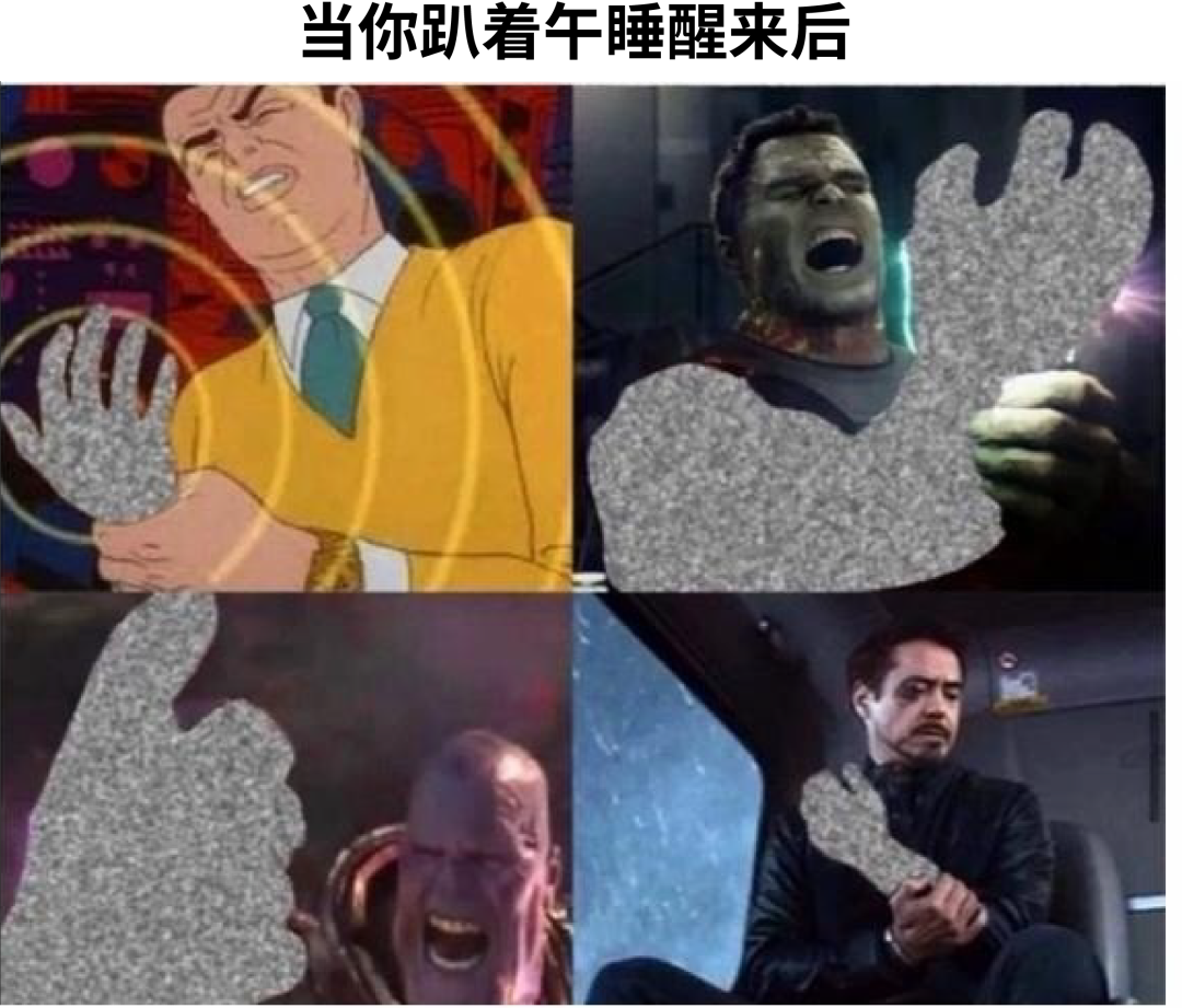 🥱午睡后:头晕眼花,口水流了一桌子,仿佛被谁偷偷打了一顿。