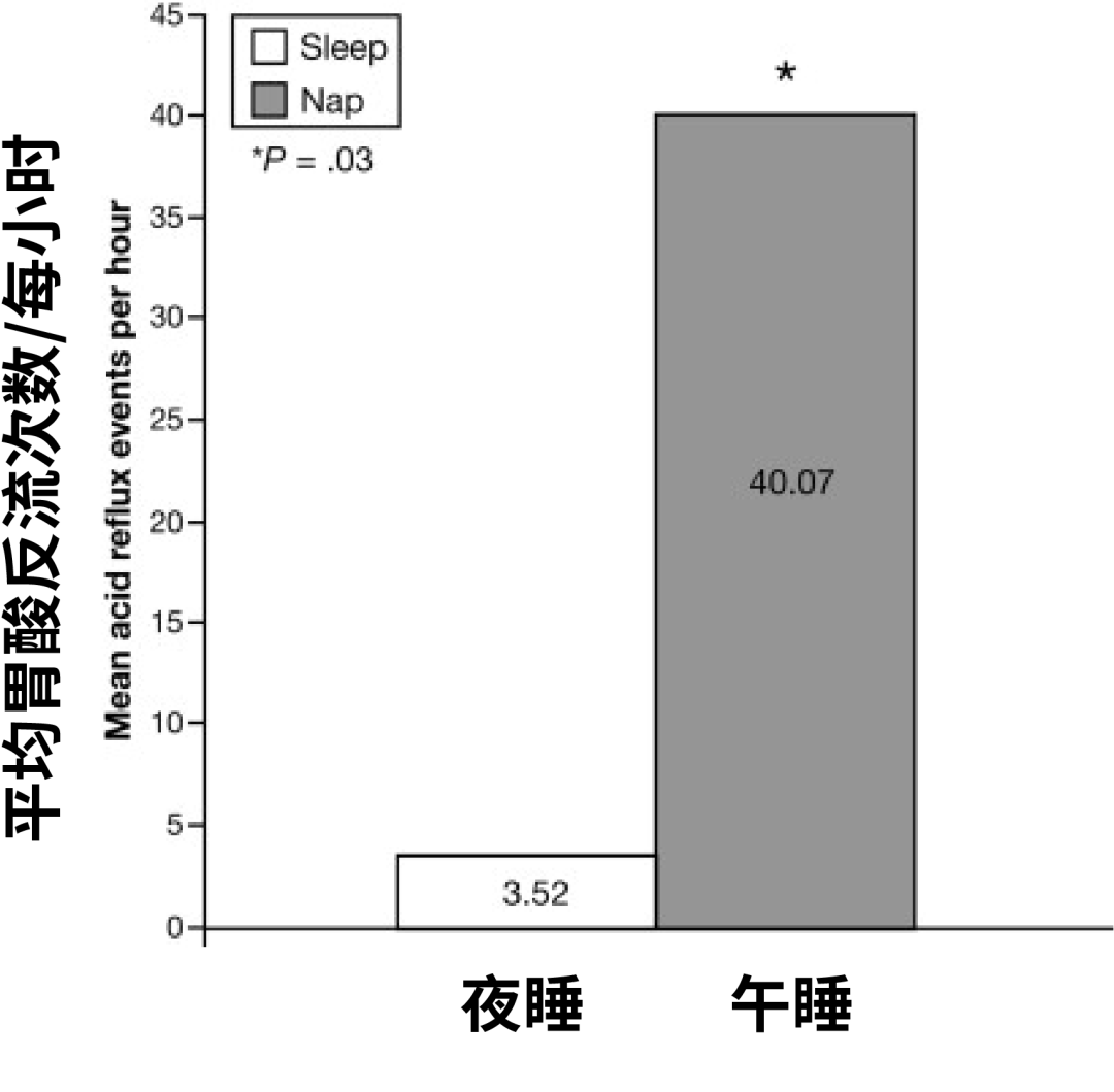 一项 2015 年发表在《临床胃肠病学与肝病学》的研究发现,与夜间睡眠相比,午睡更有可能造成更严重的胃食管反流病[6],推测原因可能是午饭后平躺的时间间隙比晚饭后短造成的。