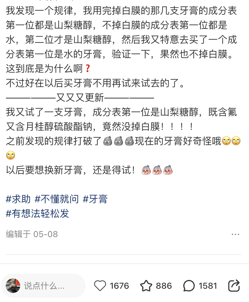 尤其是对牙膏、漱口水等口腔洗护用品敏感的