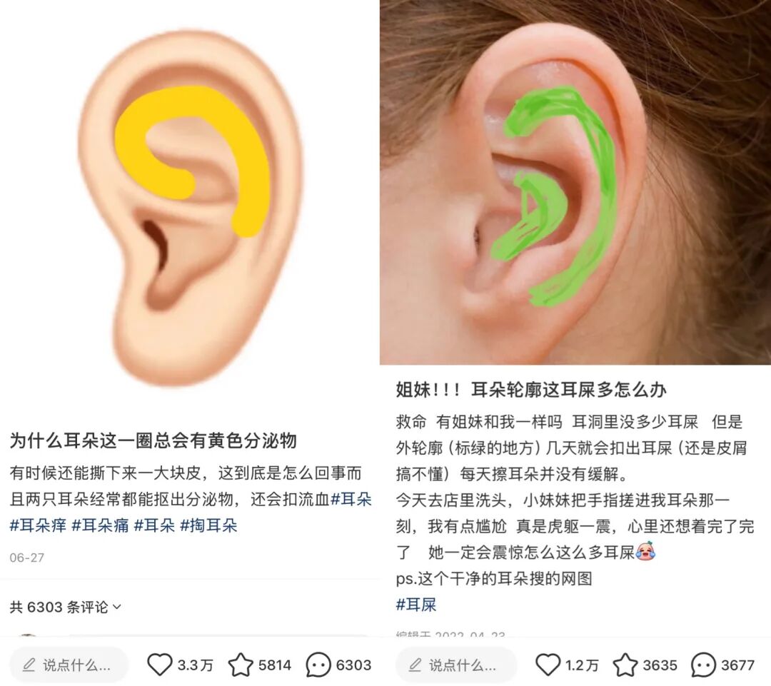 绝大多数情况下,「耳屎」和「耳廓上这些像耳屎的分泌物」是两个东西。