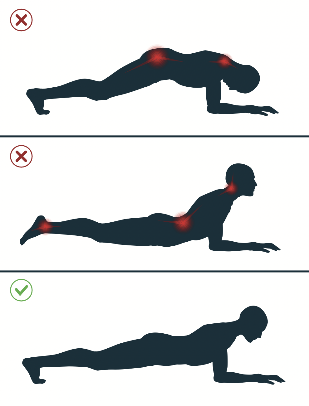⚠️错误一:塌腰。 这是最常见的错误,腰部向下凹陷,会将所有压力转移到腰椎上,不仅无效,反而伤腰。