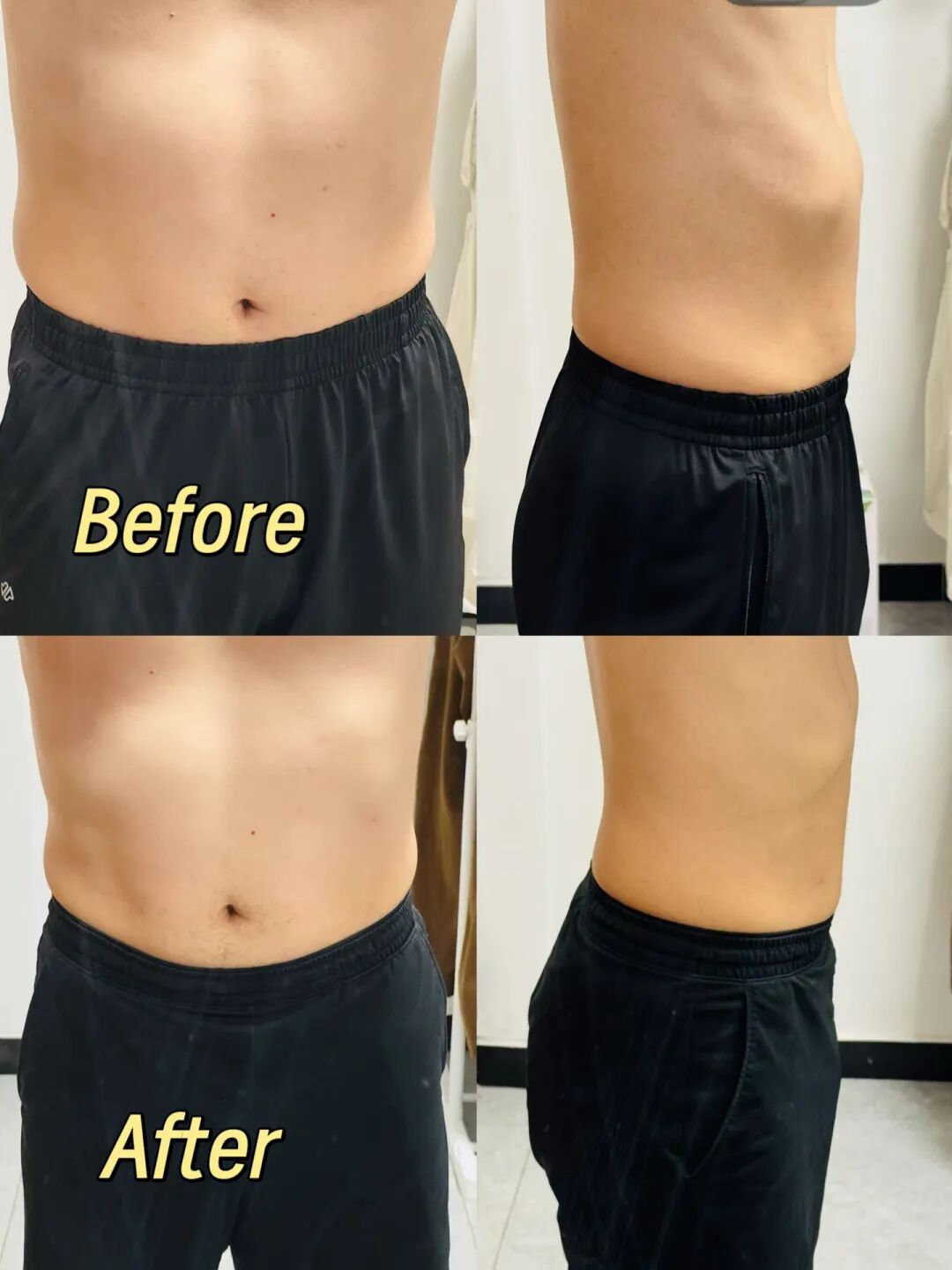 挺带感的是,从一开始就只是为了坚持满 2 分钟,到后来开始找技巧寻找腹部发力的感觉,变得有意思了起来。最重要的是 2 周最后看到自己的对比,有被惊讶到!