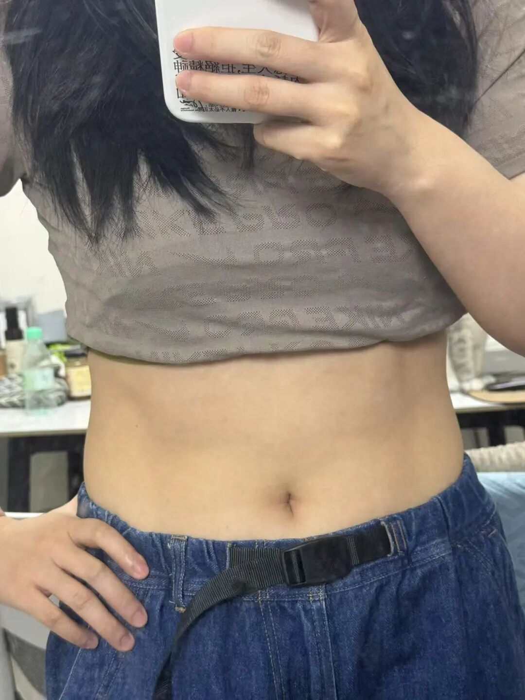 图注:拍摄于「虐腹」后,马甲线已清晰可见。