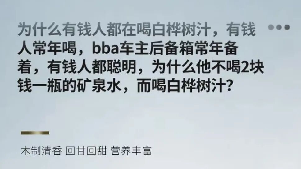 谁的钱也不是大风刮来的,一定要尝尝鲜也行。记得擦亮眼,挑那种标注了「纯天然桦树汁」的。
