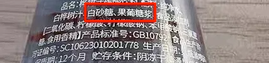 更有甚者,买到了配料表添加了白砂糖、果葡糖浆的「含糖饮料」。