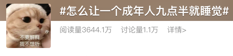 甚至热搜#怎么才能让一个成年人 9 点半睡觉#下,有高达 1.1 万的讨论。