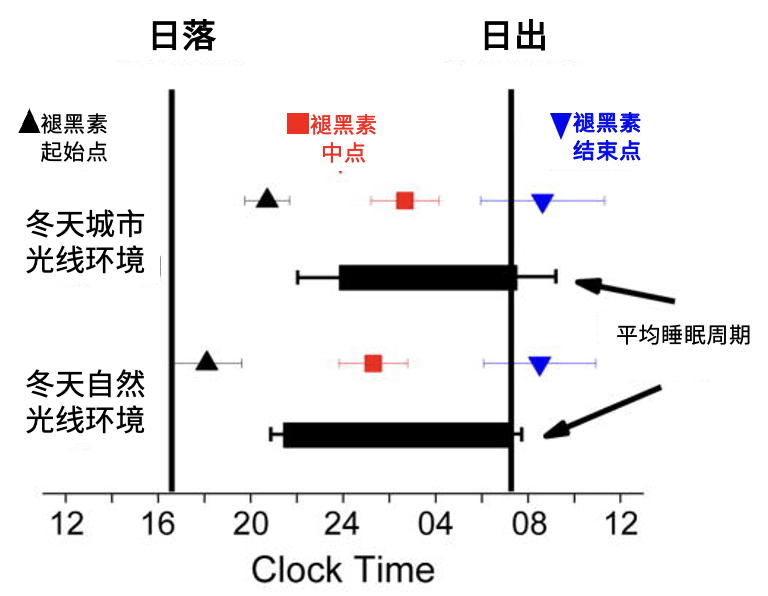 [3]Stothard ER, McHill AW, Depner CM, Birks BR, Moehlman TM, Ritchie HK, Guzzetti JR, Chinoy ED, LeBourgeois MK, Axelsson J, Wright KP Jr. Circadian Entrainment to the Natural Light-Dark Cycle across Seasons and the Weekend. Curr Biol. 2017 Feb 20;27(4):508-513.