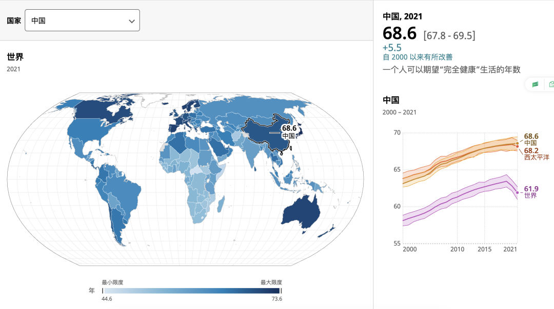 例如根据 WHO 数据,中国人在 2021 年的健康期望寿命是 68.6 岁[3]。也就是说,平均而言,我们有 68.6 年可以在无严重疾病或失能的状态下生活。