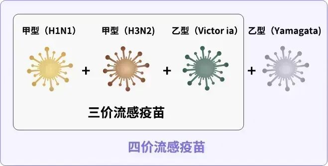 我国市面同时有三价(三合一:H3N2 + H1N1 + B/Vic)和四价(再加一个 B/Yamagata)的两种剂型。接种了的,都有保护。