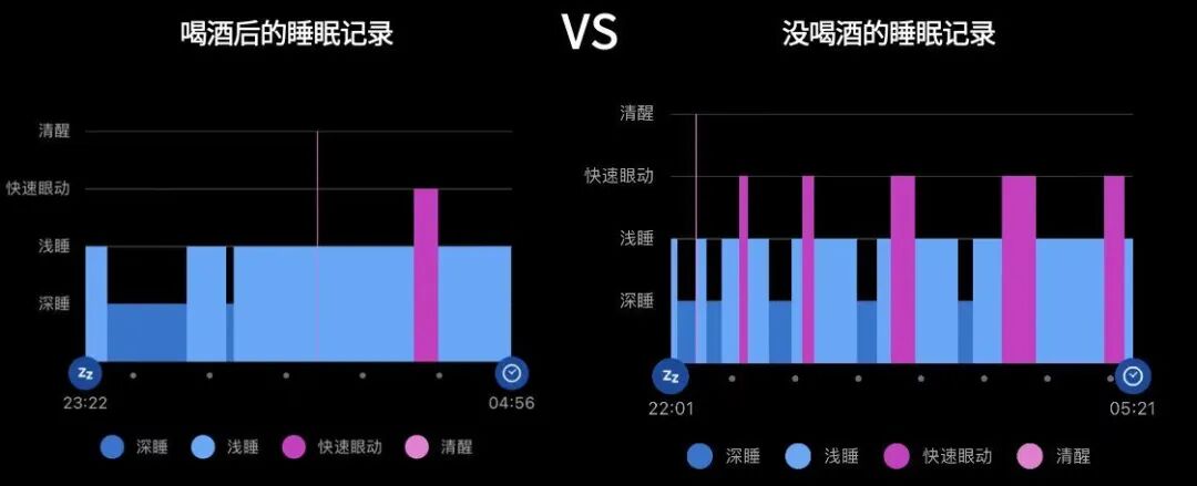 👇同事喝酒 vs 没喝酒的睡眠记录👇