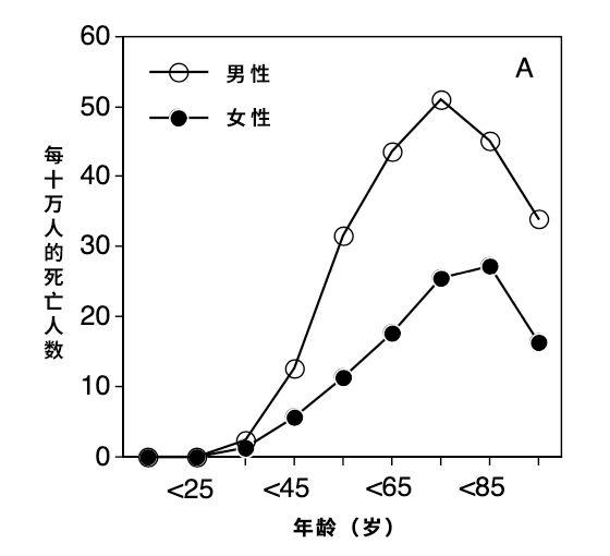 但是 45 岁是个转折点,衰老的进程明显加速。研究发现,肝病相关死亡率在 45 岁以后显著上升,45~85 岁间增加约 4 倍。[18]