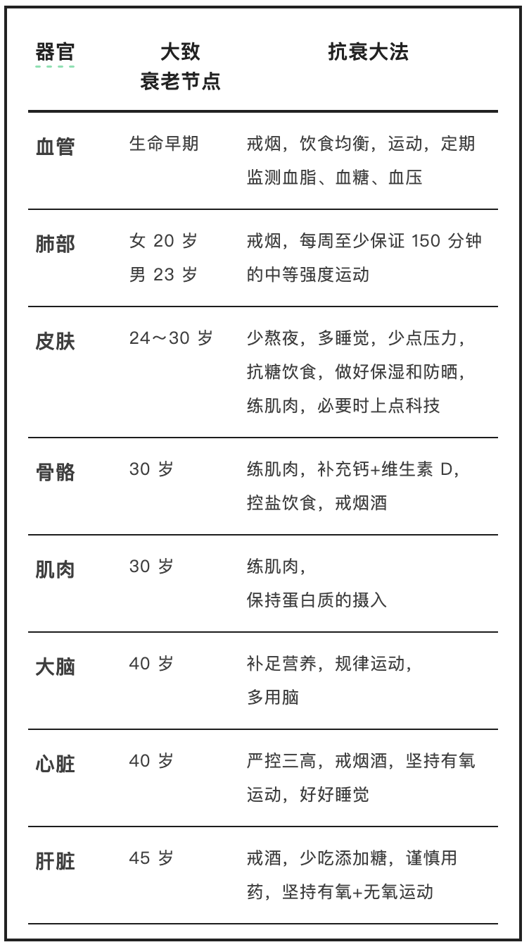 《各器官衰老时间表+抗衰方法》