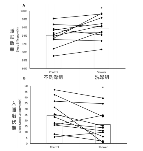 睡前洗热水澡的运动员们的睡眠效率更高,入睡潜伏期更短。