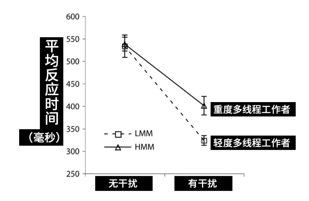 另一项 2009 年的经典研究也发现,比起不经常进行多任务处理的人,那些自称频繁进行多任务处理的人,在多项认知控制任务上表现更差,包括过滤无关信息、任务切换和工作记忆等。