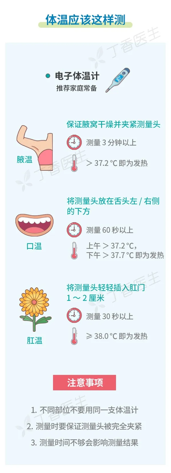 丁香医生比较了三类常见电子体温计,将其优缺点和注意事项都写在下方,供大家参考👇