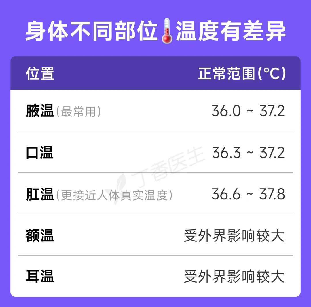 ● 水银体温计和电子体温计测量的部位不一样,而身体不同部位的温度,本身也不一样。不同部位的正常体温范围可参考👇