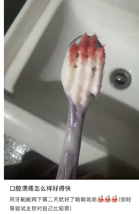 比如,用牙刷把溃疡面刷掉