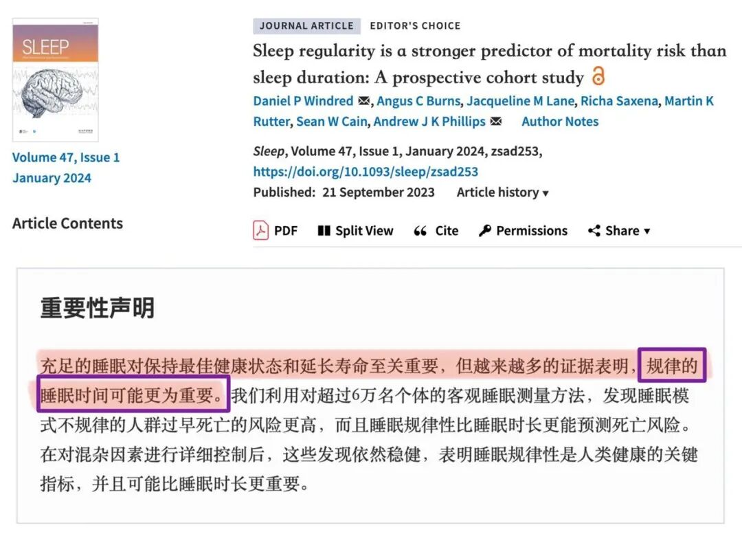 科学研究里,甚至直接把这一点作为「重要提醒」放在了文献开篇部分👇提醒大家千万不要忽视睡眠节律对「延寿」的重要性。