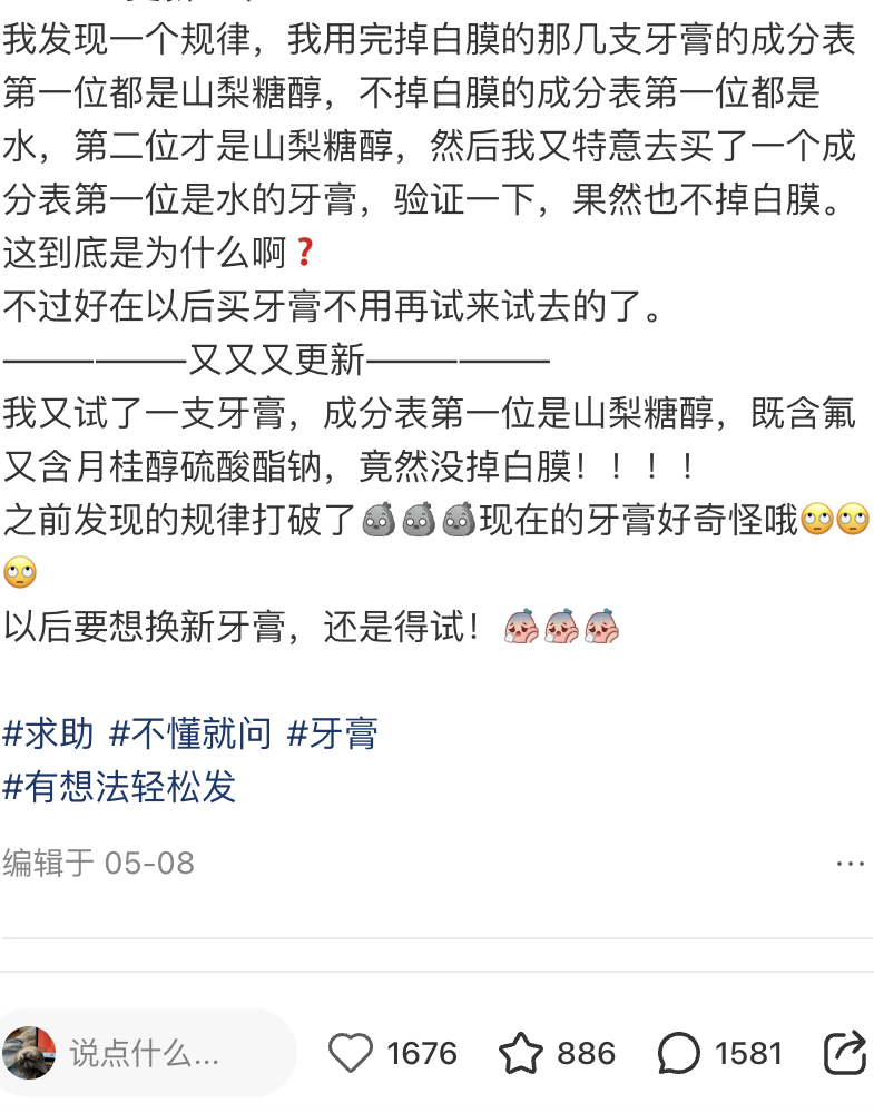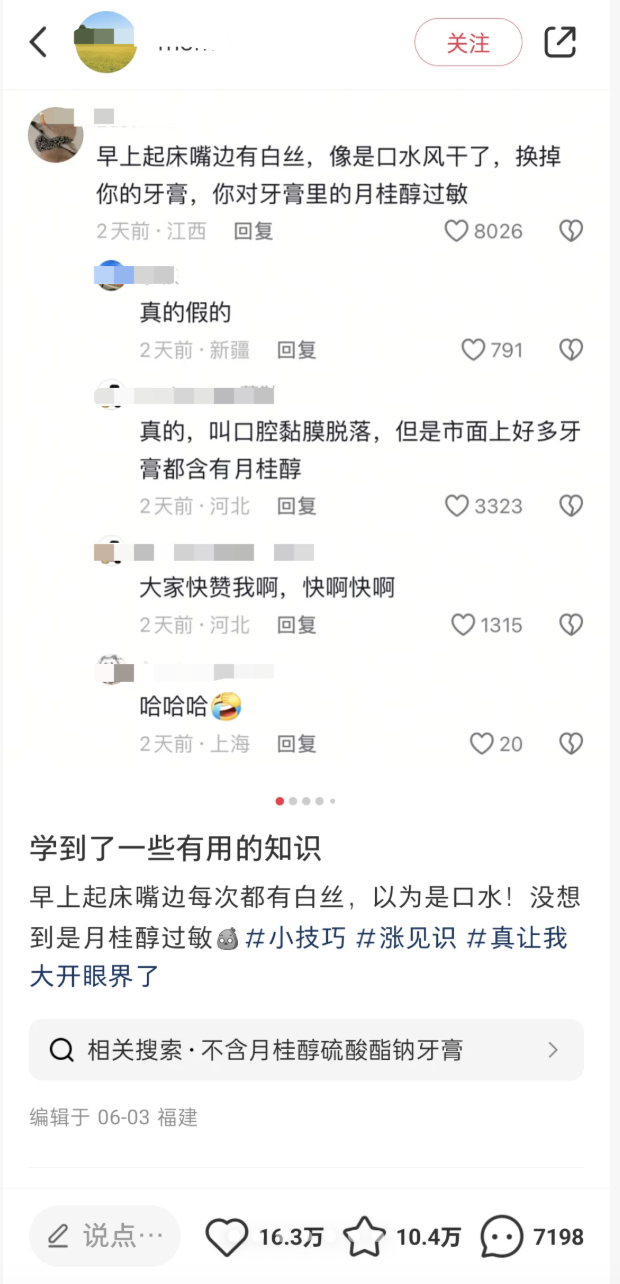 尤其是对牙膏、漱口水等口腔洗护用品敏感的