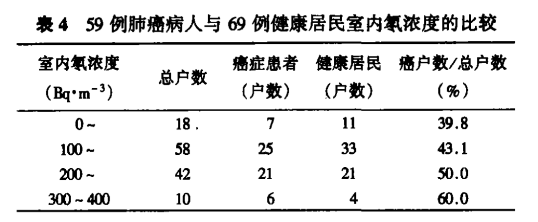 ● 低氡浓度水平下,比如低于 200 Bq/m³ 甚至 100 Bq/m³,也有肺癌病例出现。