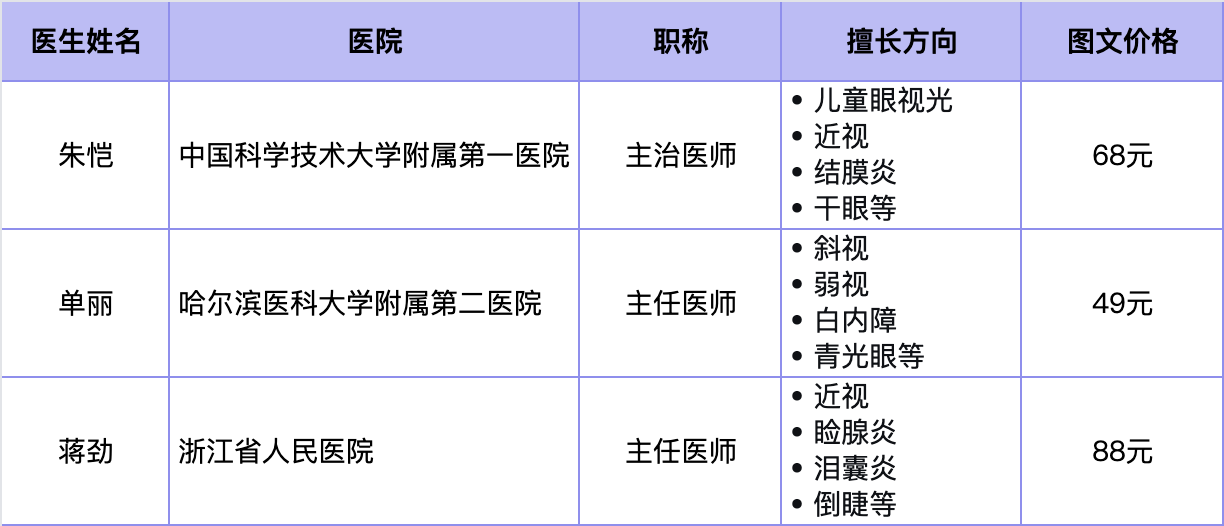 医生推荐:以下 3 位均为小儿眼科医生