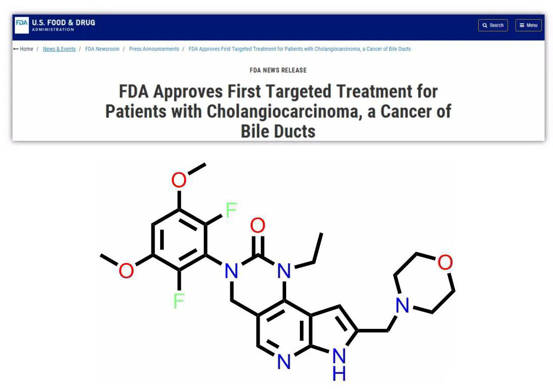 1.FDA Approves First Targeted Treatment for Patients with Cholangiocarcinoma, a Cancer of Bile Ducts. https://www.fda.gov/news~events/press~announcements/fda~approves~first~targeted~treatment~patients~cholangiocarcinoma~cancer~bile~ducts.