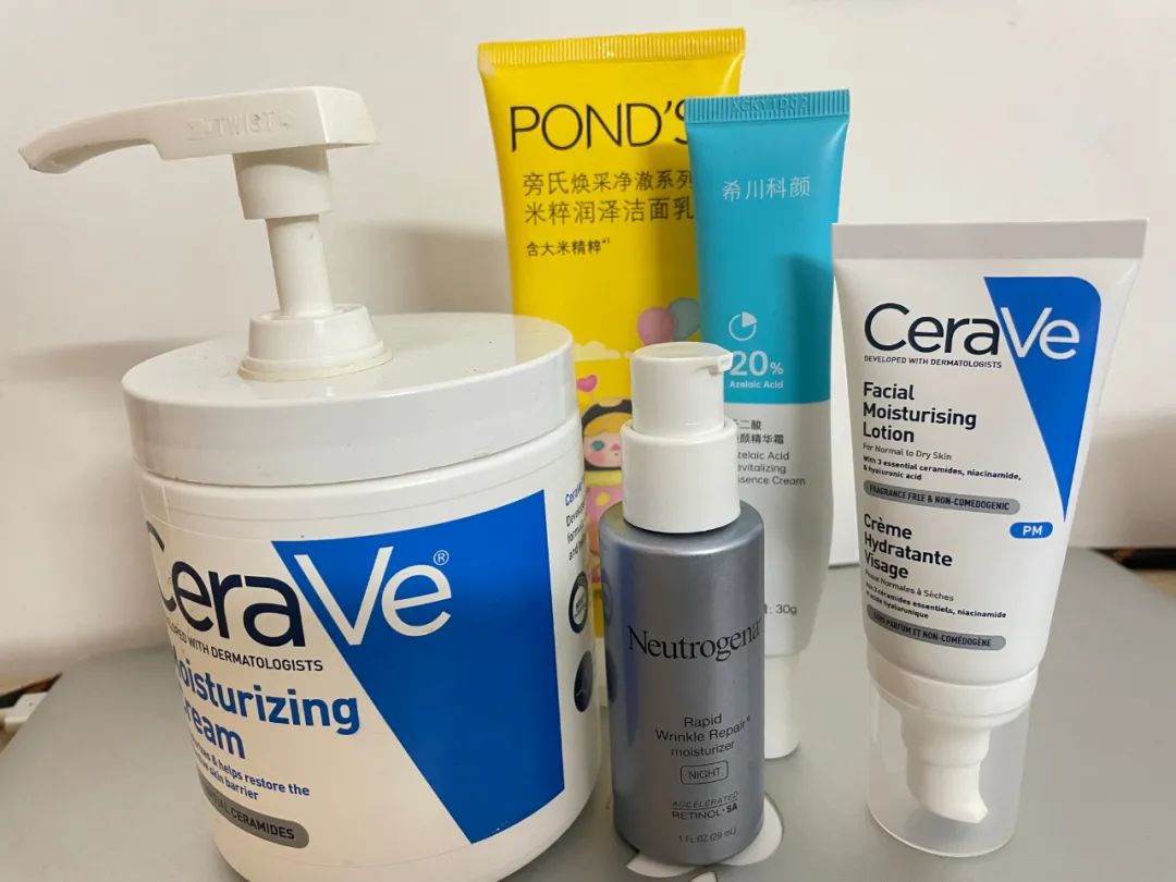 Pm:旁氏米粹洗面奶 -希川壬二酸/露得清 A 醇-适乐肤 C 乳/理肤泉 B5 精华乳/霏丝佳 DMT 乳(保湿一定要用)