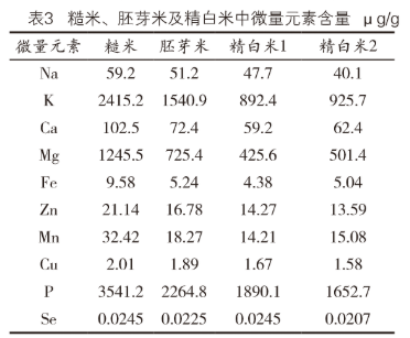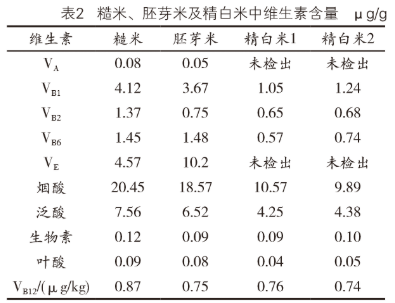 维生素和微量元素含量根据糙米、胚芽米、精白米的顺序呈现由高到低的基本特征;