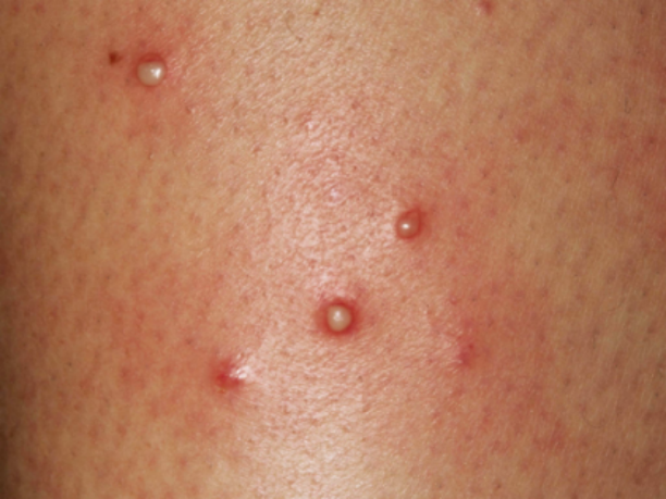 脸上疙瘩的样子看起来像水疱,或者已经有一些结痂;