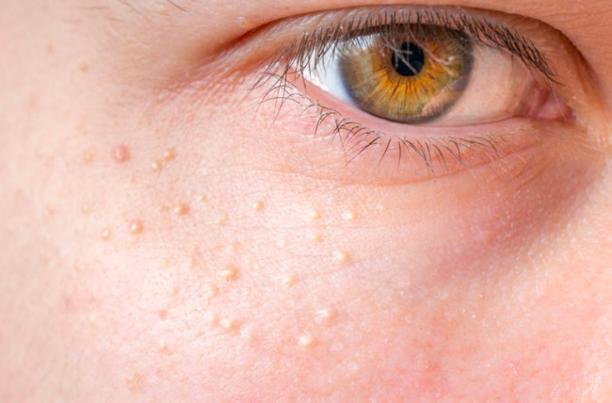 对于持续不退的粟丘疹,可以到医院皮肤科做好消毒操作的前提下针清处理掉。