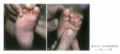 其他常见的引起脚趾交叉的畸形还有先天性跖骨内收,先天性跖骨内收畸形表现为前足在附中关节处的内翻与内收,畸形在踝关节前方,而足跟与小腿仍保持正常关系。