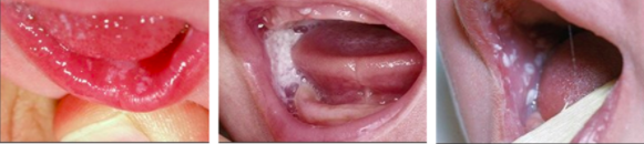 一般只在舌面上形成奶块,口腔其他部位没有奶块。