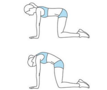 要点:采取四点跪位,吸气准备,呼气时臀部的肌肉发力,骨盆后倾,背部拱起,保持 15~30 秒,重复 5~8 次。