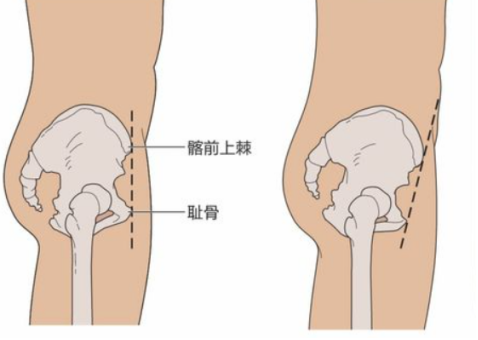 如下图所示,左侧是正常骨盆,右侧是骨盆前倾。